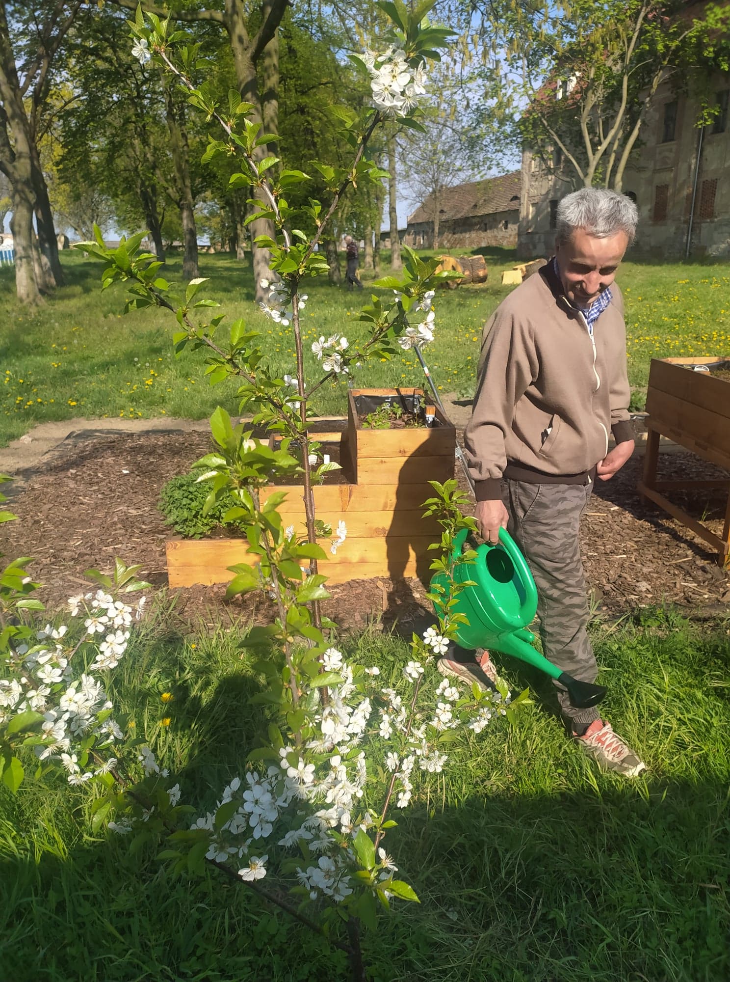 Pan Heniek – Mieszkaniec Schroniska w Żukowicach, od kilku lat dba o wygląd naszego podwórka. Zna się na kwiatach i ich pielęgnacji, w tym sezonie zajmuje się również ogródkiem Laudato Si.