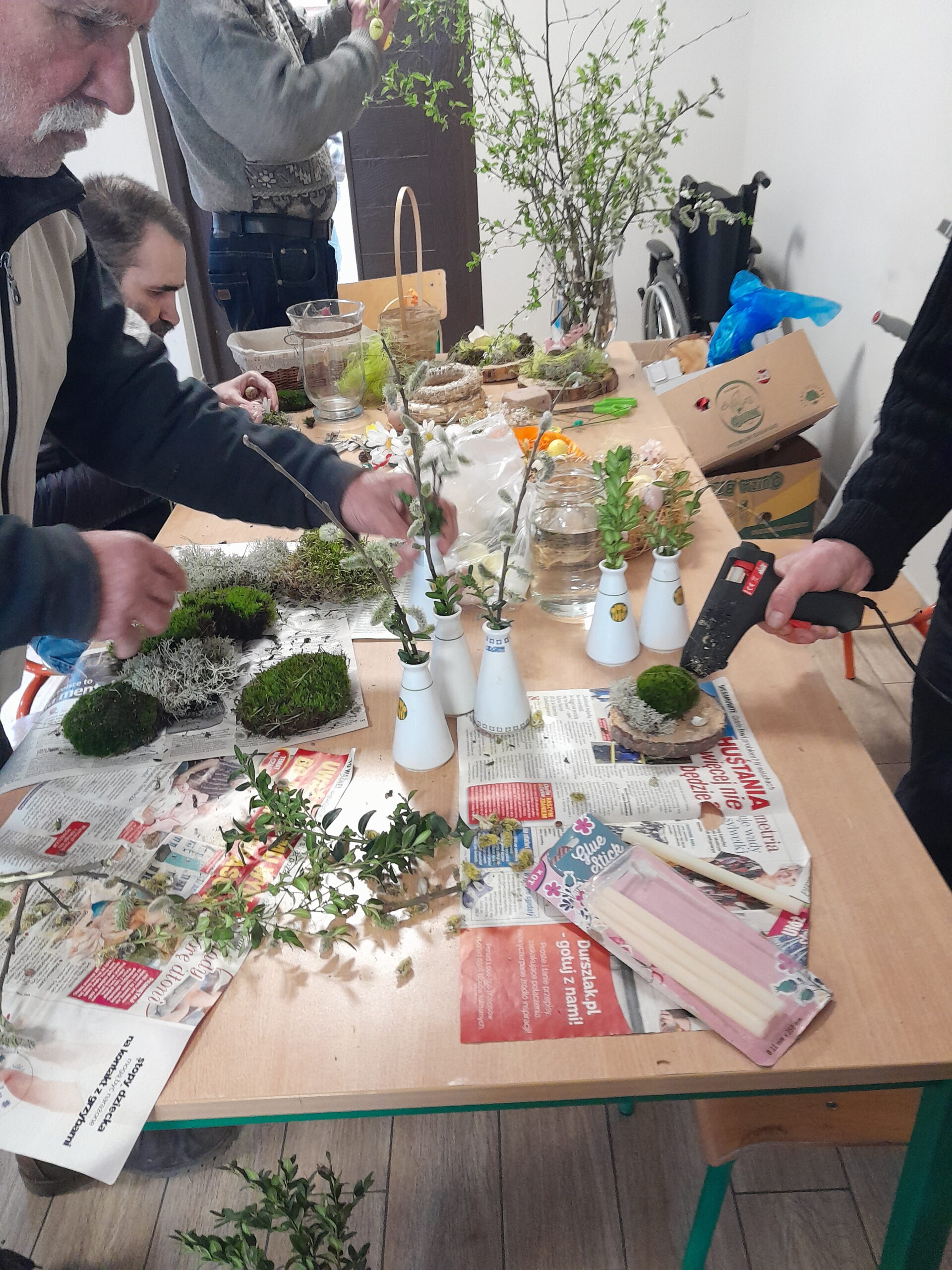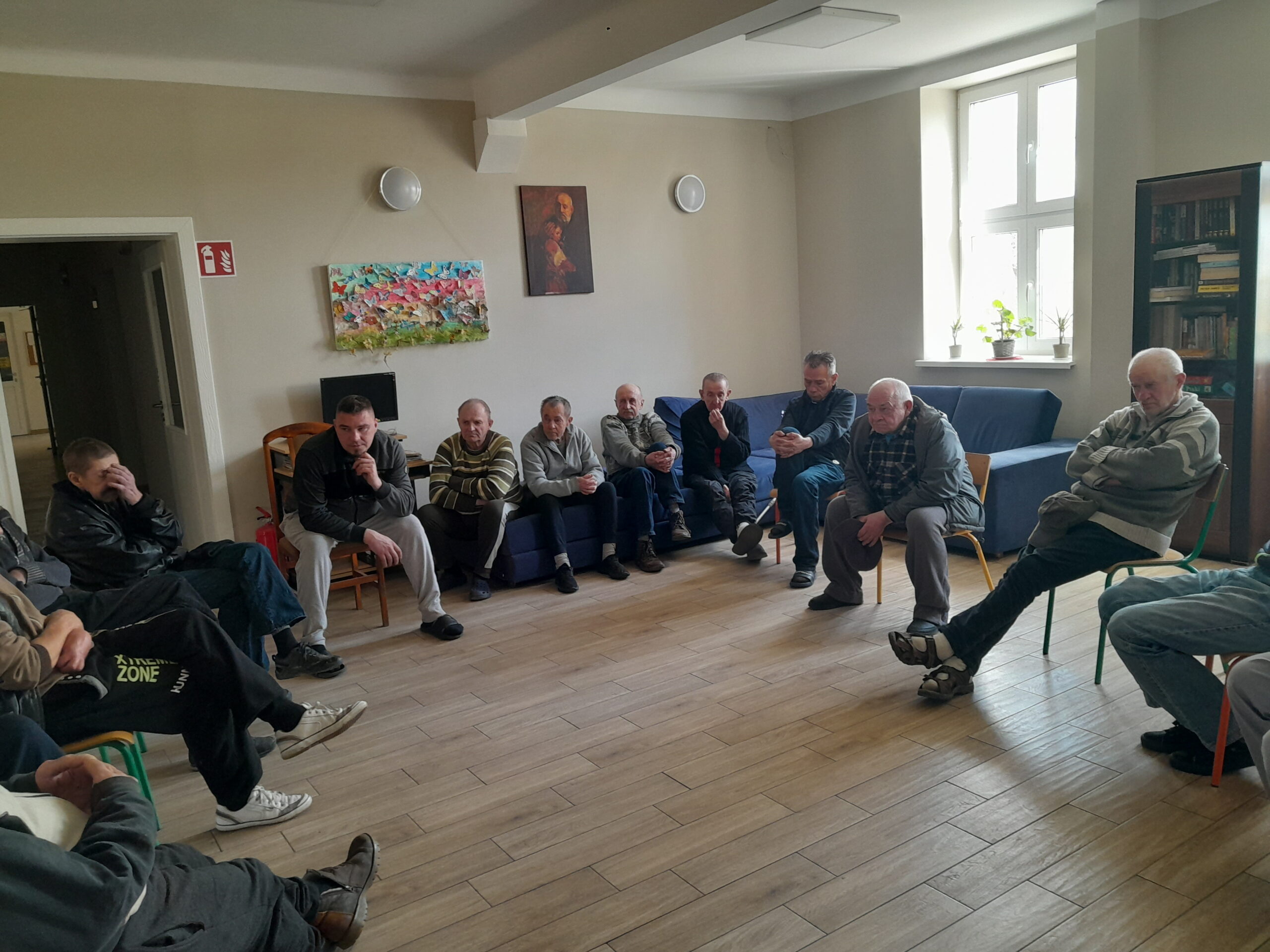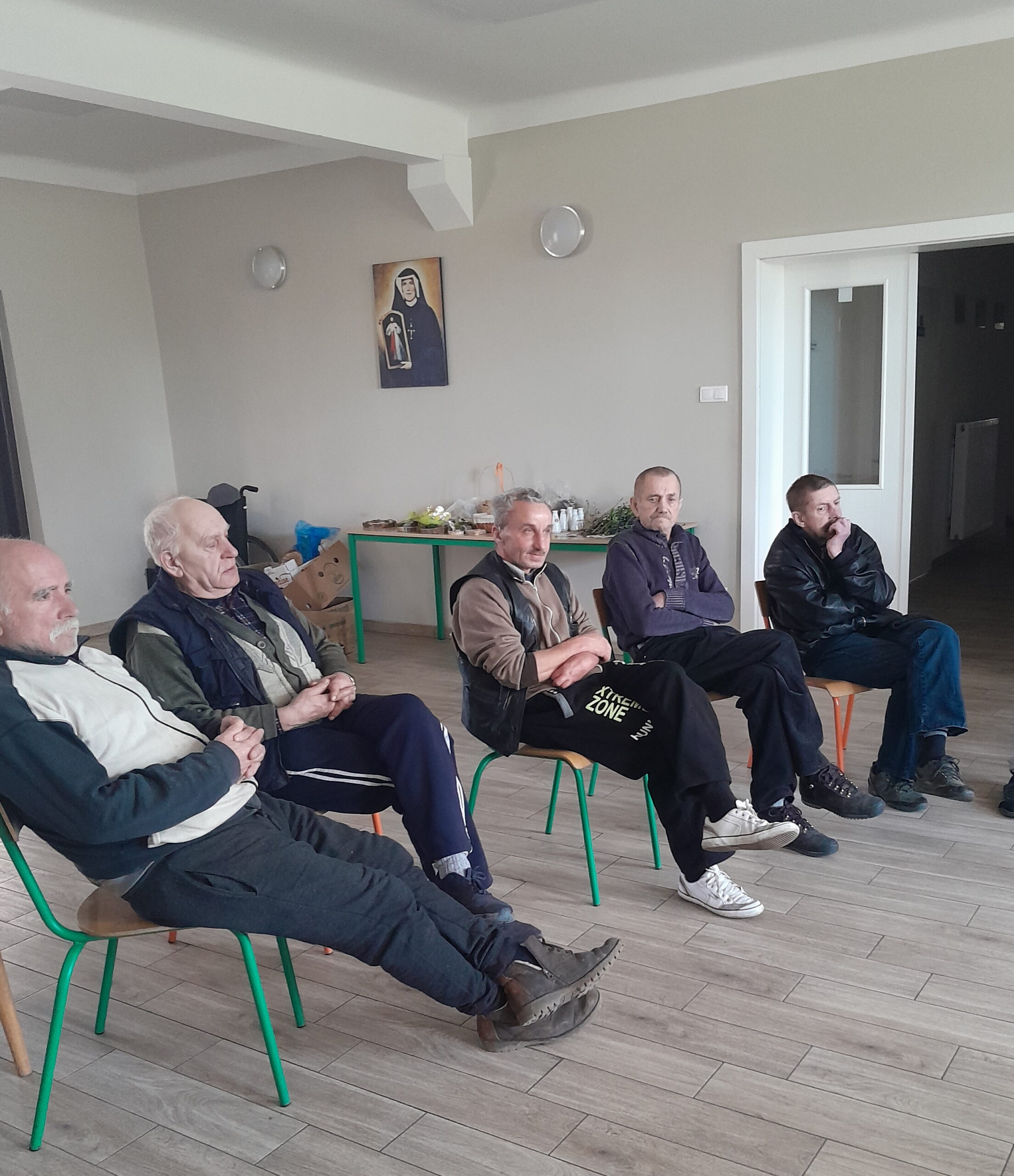 W ramach psychoterapii grupowej w żukowickim Ośrodku dla bezdomnych mężczyzn w Wielką środę odbyło się kolejne spotkanie. Rozpoczęło się ono rozważaniami wokół przeżywania świąt w naszym życiu. Padły m.in. pytania dlaczego człowiek potrzebuje czasu odpoczynku, czasu refleksji, czasu świętowania oraz jak najlepiej przeżyć świąteczny okres. W aspekcie duchowym na te pytania pomógł znaleźć odpowiedzi o. Adam Szustak, którego audycji z cyklu „Pustyniaki” podopieczni schroniska wspólnie wysłuchali. Panowie usłyszeli m.in. słowa: „Gdziekolwiek jesteś, tam jest twój dom. Gdziekolwiek jesteś tam musisz podjąć trud, który sprawi, że to miejsce, w którym jesteś, to życie, które wiedziesz będzie dobrym i sensownym”. Słowa te wpłynęły na dalszą dyskusję, psycholog podkreślił jak ważne jest, aby każdy nowy dzień, ten zwykły czy też świąteczny traktować jak „dzień do zrobienia”, z jego trudem, ale też z jego pięknem. W dalszej części spotkania podopieczni podzielili się dobrymi wspomnieniami związanymi z przeżywaniem świąt – wspominając swoich bliskich i przyjaznych ludzi, którzy przyczynili się do tego, że takie wartościowe wspomnienia w nich przetrwały. Kolejnym przygotowanym punktem był Wielkanocny Quiz, w którym panowie odpowiadali na pytania z wiedzy biblijnej np. Jakie osoby spotkał Jezus podczas drogi krzyżowej ? lub tradycjami wielkanocnymi, jak np. Jakie pokarmy święcimy w koszyczku? lub jakie zwierzęta symbolizują te wiosenne święta? Zakończenie spotkania było pełne radości, gdyż wszyscy uczestnicy quizu zostali nagrodzeni upominkami i poczęstowani słodkimi babeczkami. Było to dobrą motywacją, aby po chwili przerwy wspólnie zrelaksować się przy tworzeniu wiosennych stroików, które ozdobią nasz ośrodek, aby uczynić przeżywanie tych nadchodzących świąt jeszcze piękniejszym.