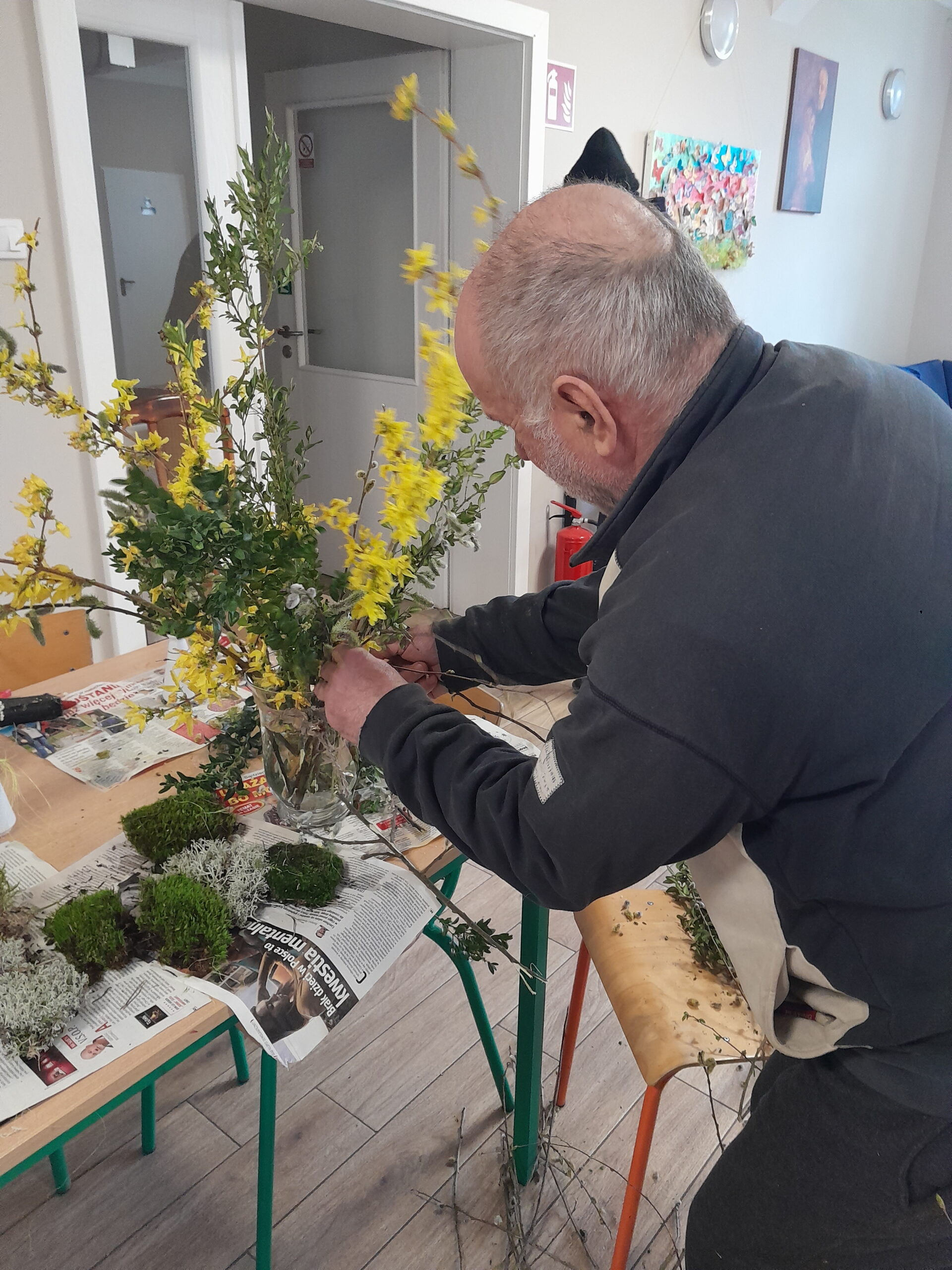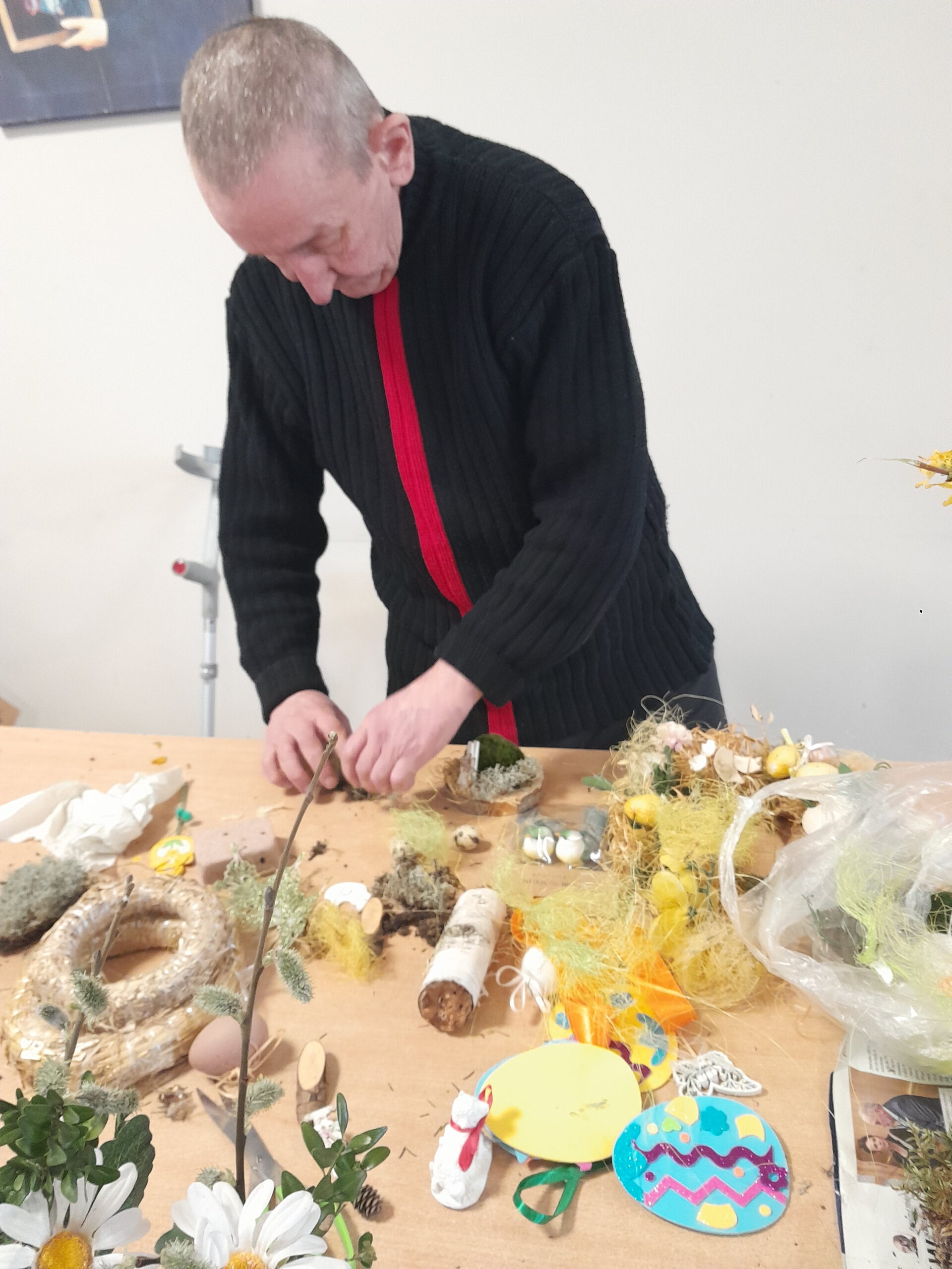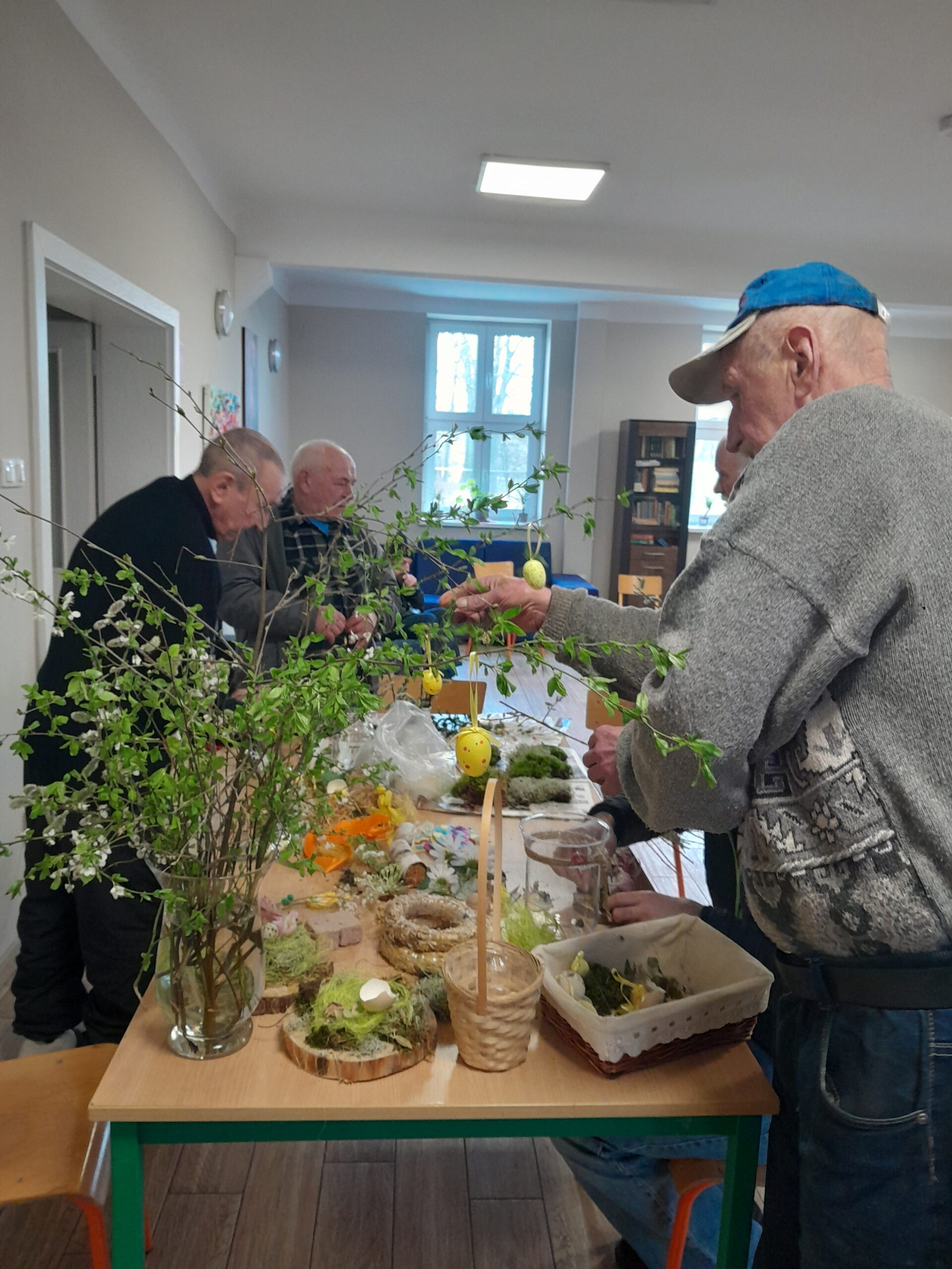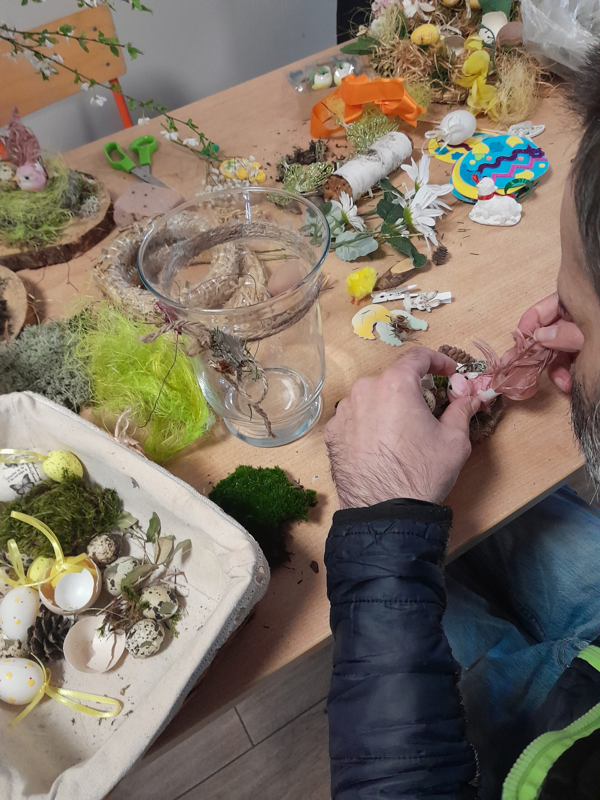 W ramach psychoterapii grupowej w żukowickim Ośrodku dla bezdomnych mężczyzn w Wielką środę odbyło się kolejne spotkanie. Rozpoczęło się ono rozważaniami wokół przeżywania świąt w naszym życiu. Padły m.in. pytania dlaczego człowiek potrzebuje czasu odpoczynku, czasu refleksji, czasu świętowania oraz jak najlepiej przeżyć świąteczny okres. W aspekcie duchowym na te pytania pomógł znaleźć odpowiedzi o. Adam Szustak, którego audycji z cyklu „Pustyniaki” podopieczni schroniska wspólnie wysłuchali. Panowie usłyszeli m.in. słowa: „Gdziekolwiek jesteś, tam jest twój dom. Gdziekolwiek jesteś tam musisz podjąć trud, który sprawi, że to miejsce, w którym jesteś, to życie, które wiedziesz będzie dobrym i sensownym”. Słowa te wpłynęły na dalszą dyskusję, psycholog podkreślił jak ważne jest, aby każdy nowy dzień, ten zwykły czy też świąteczny traktować jak „dzień do zrobienia”, z jego trudem, ale też z jego pięknem. W dalszej części spotkania podopieczni podzielili się dobrymi wspomnieniami związanymi z przeżywaniem świąt – wspominając swoich bliskich i przyjaznych ludzi, którzy przyczynili się do tego, że takie wartościowe wspomnienia w nich przetrwały. Kolejnym przygotowanym punktem był Wielkanocny Quiz, w którym panowie odpowiadali na pytania z wiedzy biblijnej np. Jakie osoby spotkał Jezus podczas drogi krzyżowej ? lub tradycjami wielkanocnymi, jak np. Jakie pokarmy święcimy w koszyczku? lub jakie zwierzęta symbolizują te wiosenne święta? Zakończenie spotkania było pełne radości, gdyż wszyscy uczestnicy quizu zostali nagrodzeni upominkami i poczęstowani słodkimi babeczkami. Było to dobrą motywacją, aby po chwili przerwy wspólnie zrelaksować się przy tworzeniu wiosennych stroików, które ozdobią nasz ośrodek, aby uczynić przeżywanie tych nadchodzących świąt jeszcze piękniejszym.