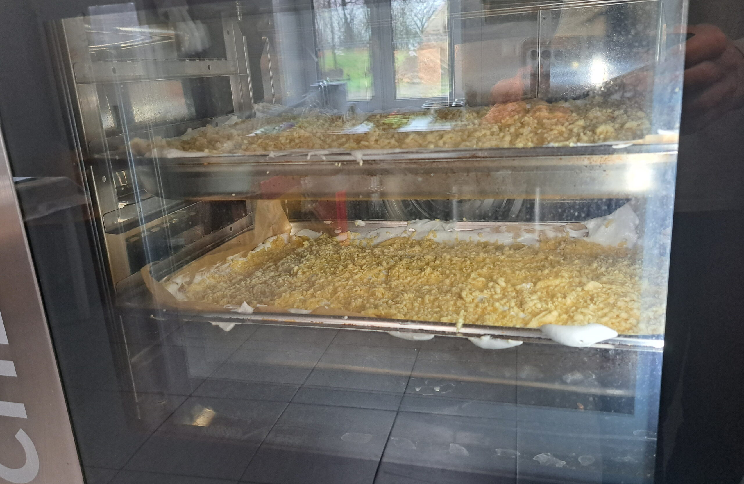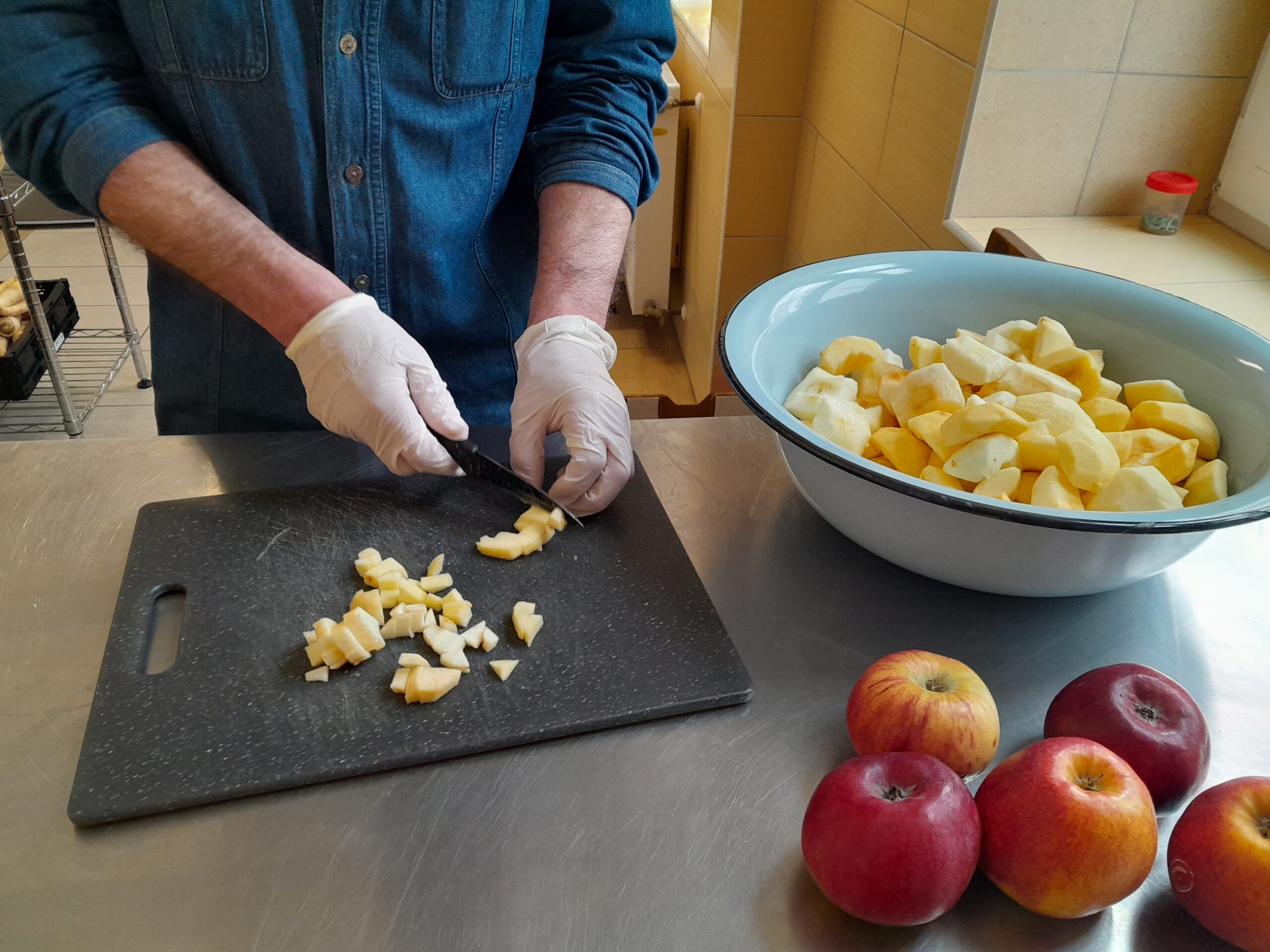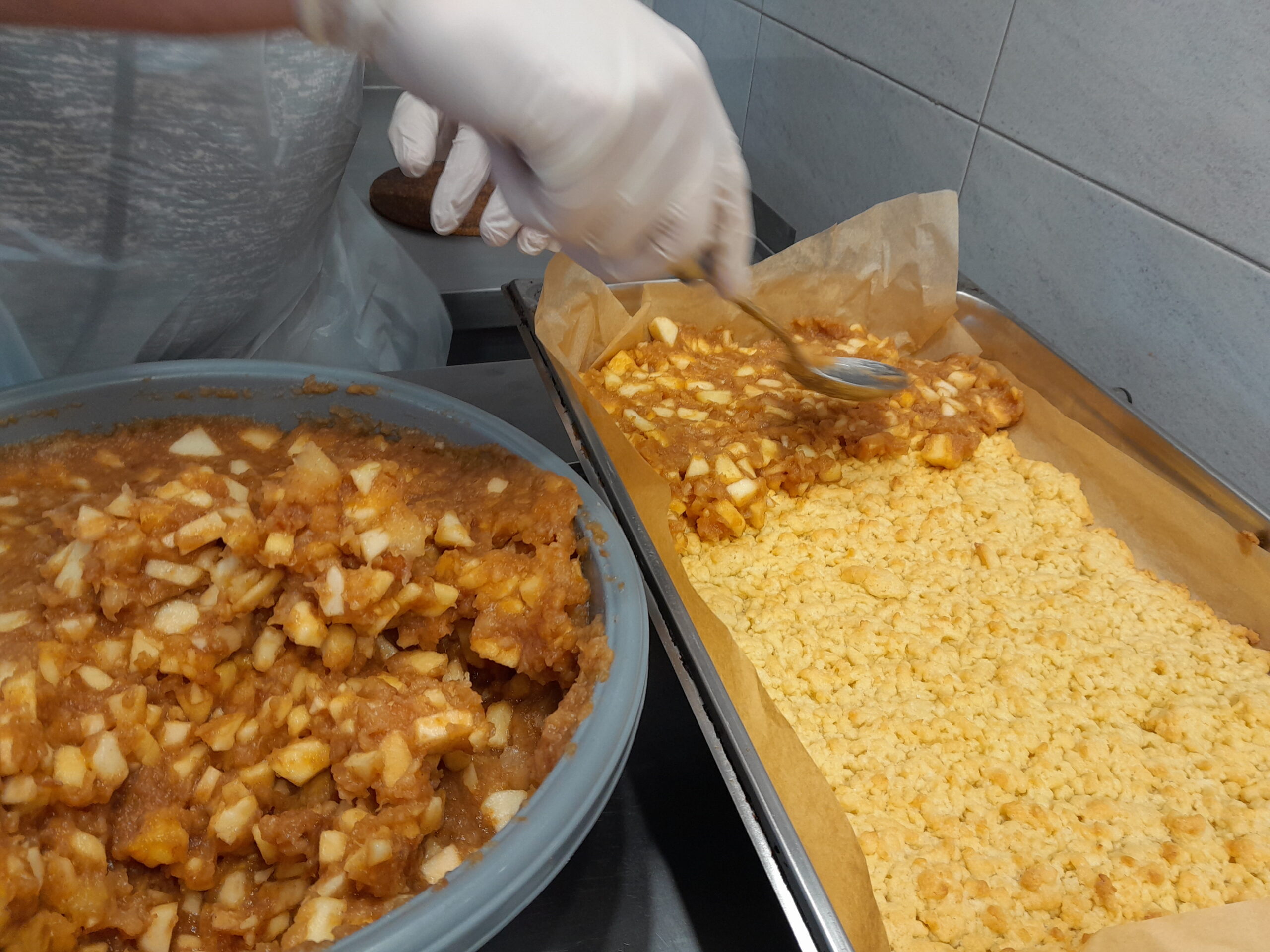 Za oknem ponuro, deszczowo, wiosny nie widać dlatego Mieszkańcy  Schroniska „Caritas” Diecezji Zielonogórsko – Gorzowskiej, Ośrodka Aktywizującego dla Bezdomnych Mężczyzn im. Św. Siostry Faustyny w Żukowicach postanowili osłodzić sobie czas  w oczekiwaniu na słoneczne dni. Dlatego w ramach zajęć kuchennych samodzielnie upiekli przepyszne ciasto – szarlotkę.