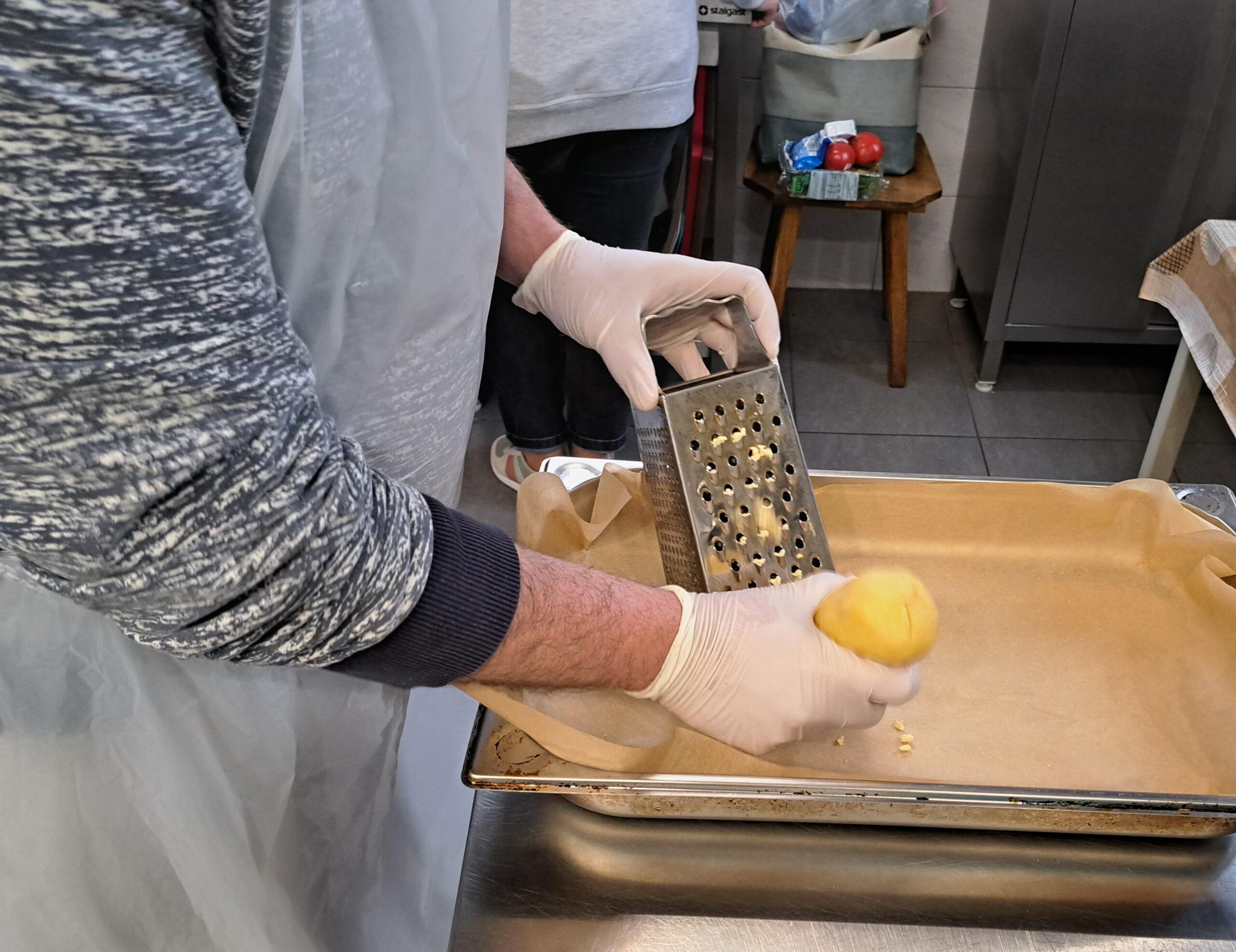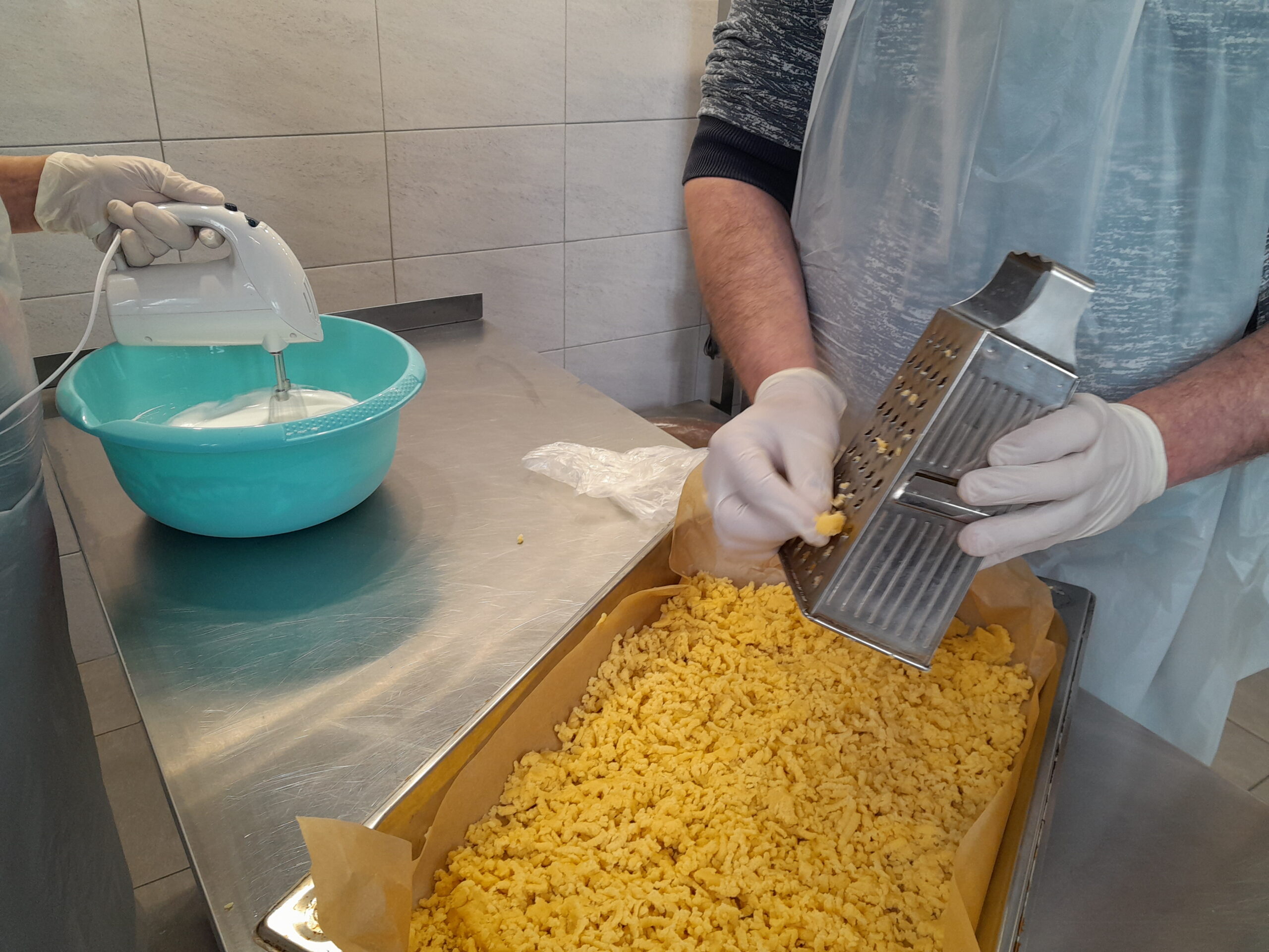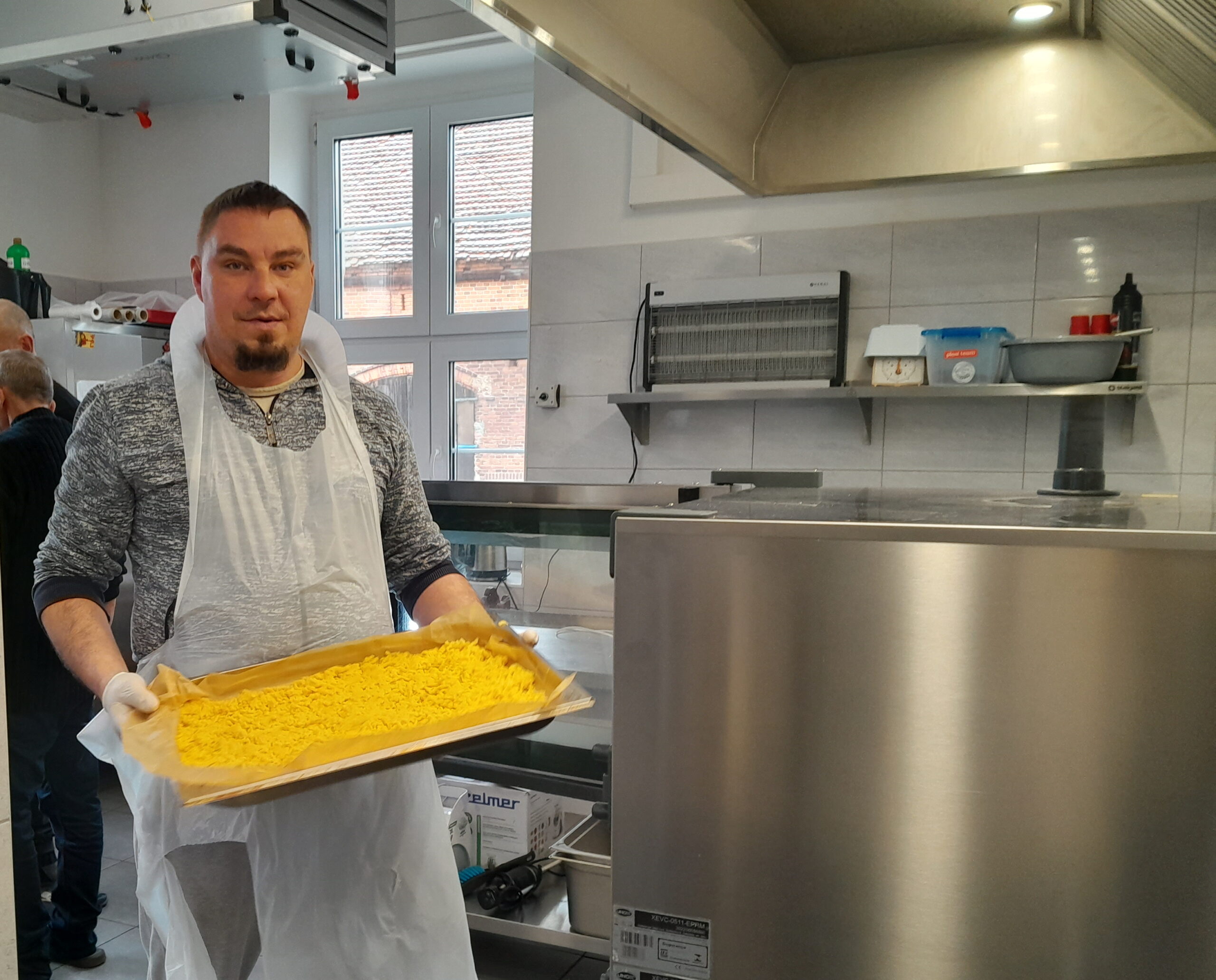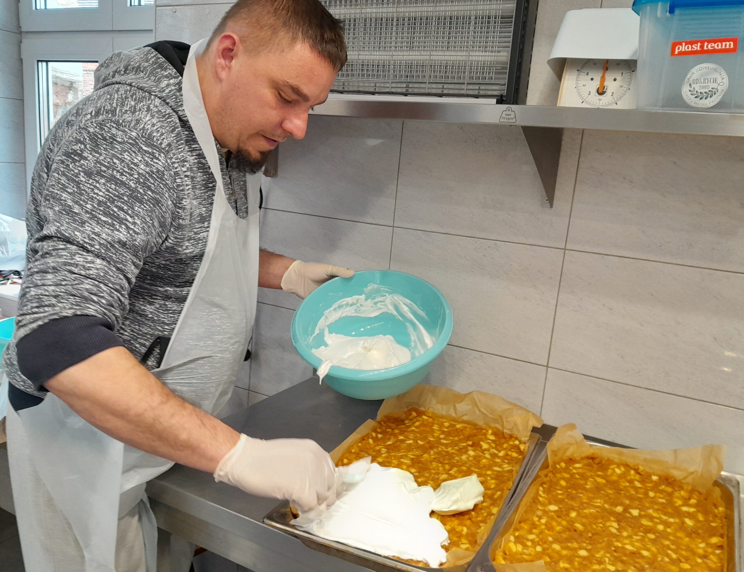 Panowie zdobywają kolejne umiejętności i zapoznają się z obsługą profesjonalnych sprzętów, które są wyposażeniem kuchni w Schronisku. Wiele satysfakcji przyniósł wszystkim efekt końcowy, gdy po upieczeniu można było z apetytem częstować się domowym ciastem.