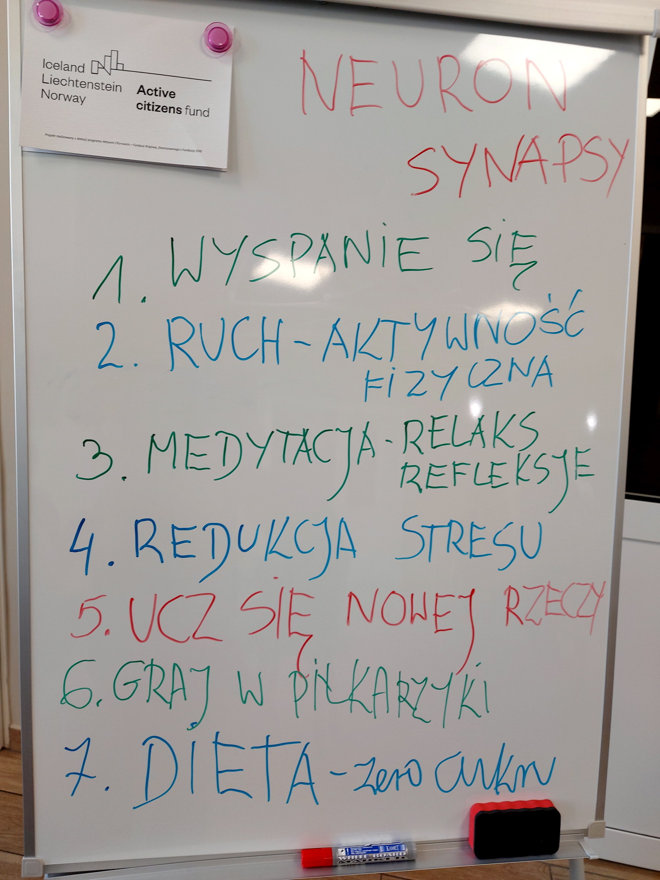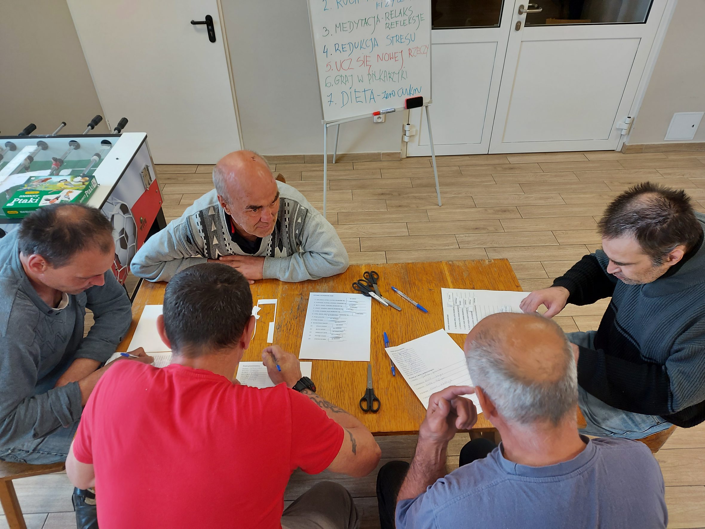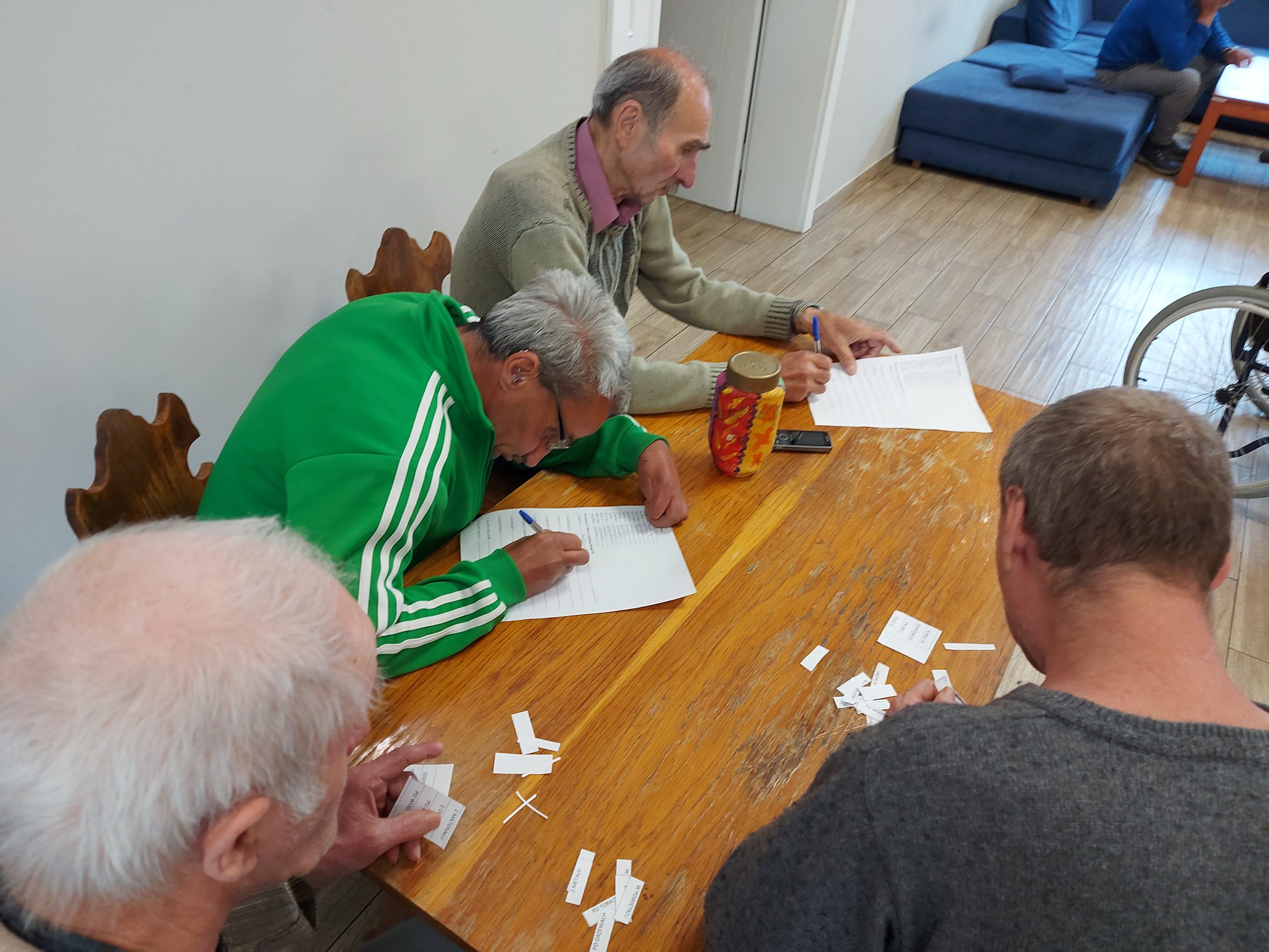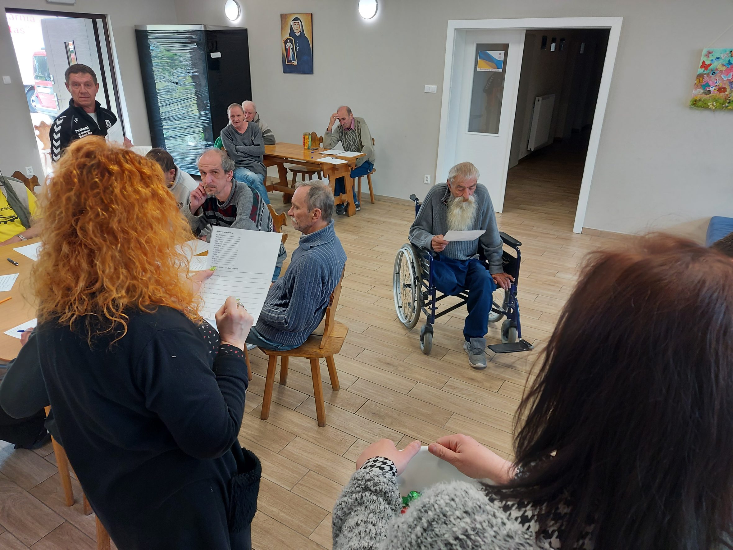 Oprócz wiadomości, jak istotne dla mózgu są: odpowiednia dieta, aktywność fizyczna, uczenie się nowych rzeczy czy radzenie sobie ze stresem, panowie w kolejnej części spotkania mieli także okazję sprawdzić jak działają i wzmocnić swoje procesy poznawcze. Bowiem przy pomocy wcześniej przygotowanych przez psychologa ćwiczeń pracowali chociażby nad poprawą swojej koncentracji, uwagi, orientacji w czasie czy tak ważnej pamięci. Jak ocenili sami panowie – spotkanie w takiej formie u wielu z nich przywołało dobre wspomnienia z czasów młodości, z beztroskich lat szkolnych, ale też były okazją, by przyswoić nowe informacje, opanować nowe umiejętności czy też zintegrować się z innymi mieszkańcami schroniska.