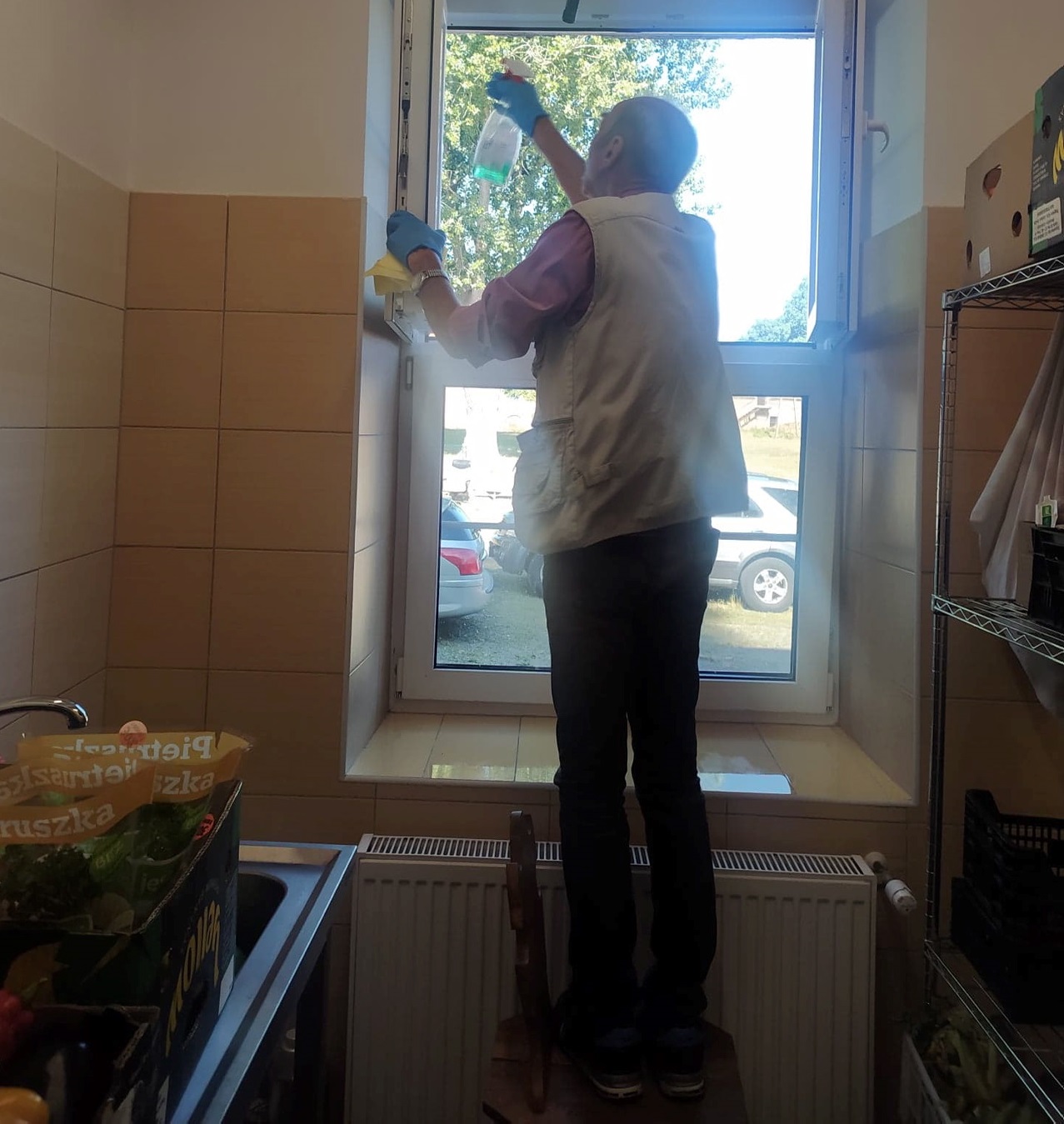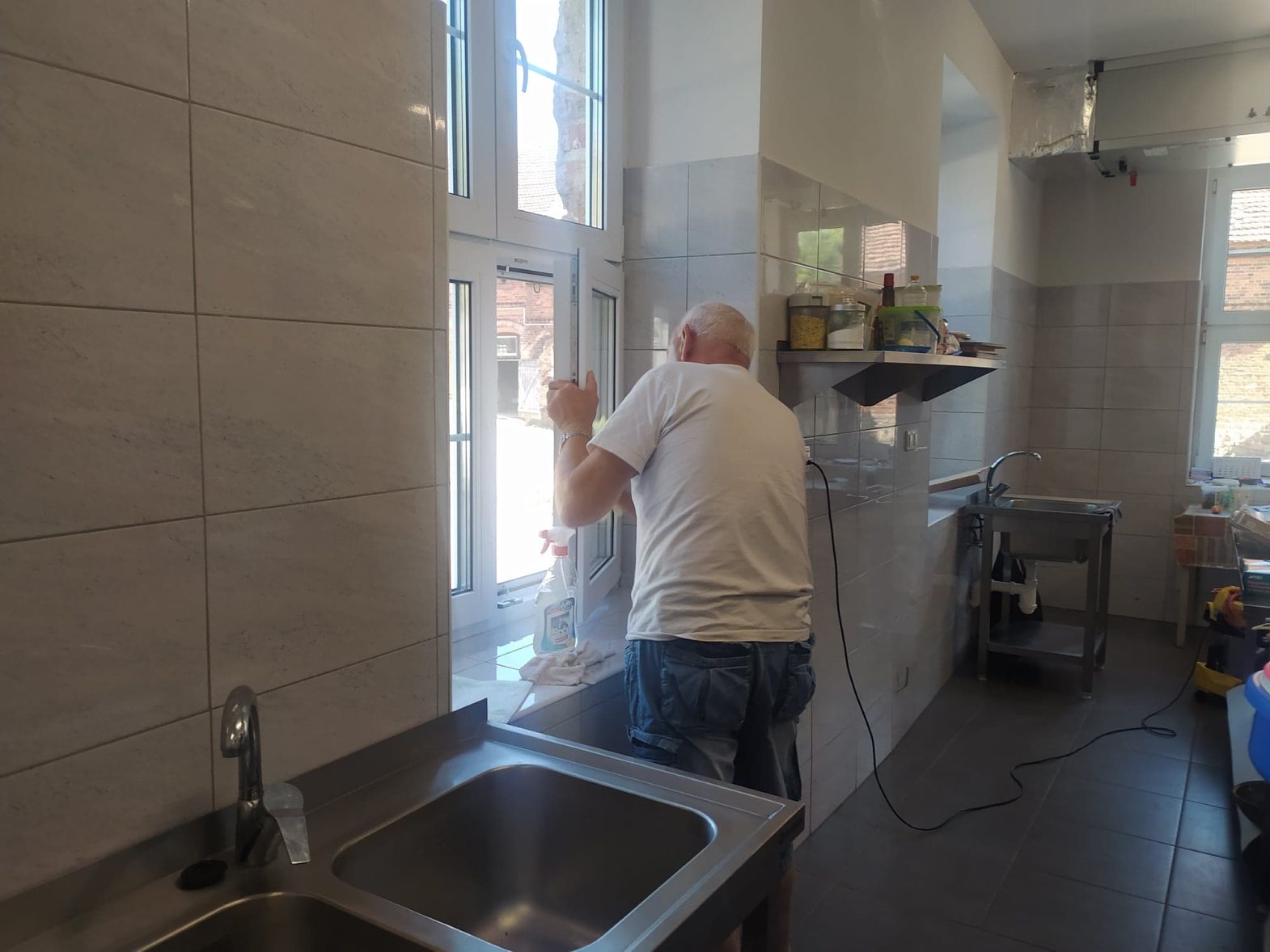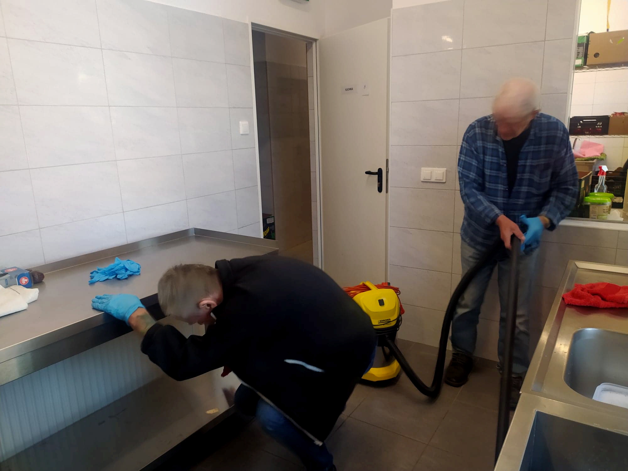 Panowie podczas cyklicznych szkoleń robią generalne porządki w pomieszczeniach kuchennych oraz około kuchennych. Dzisiaj każdy z Mieszkańców na miarę swoich możliwości podjął się zadania, które zostało wyznaczone przez Panią Coach. Każdy z Mieszkańców ma swój wkład w pracach kuchennych.