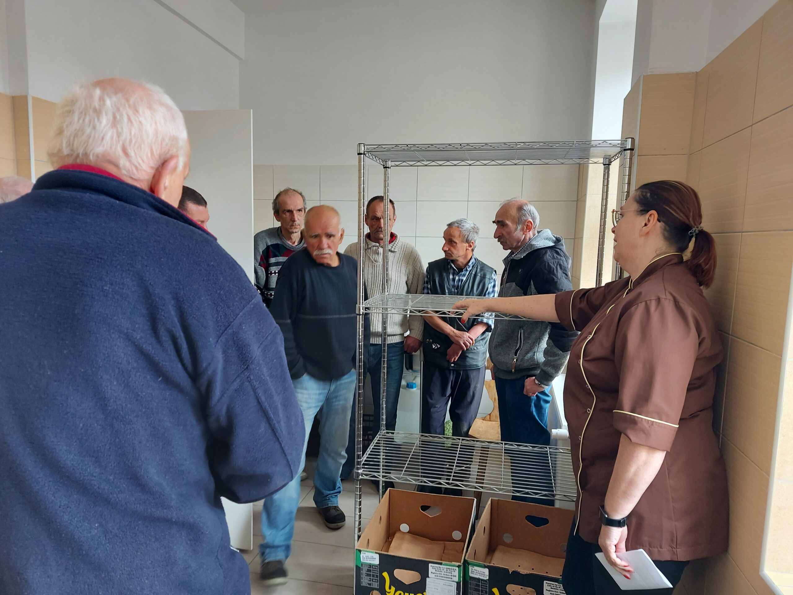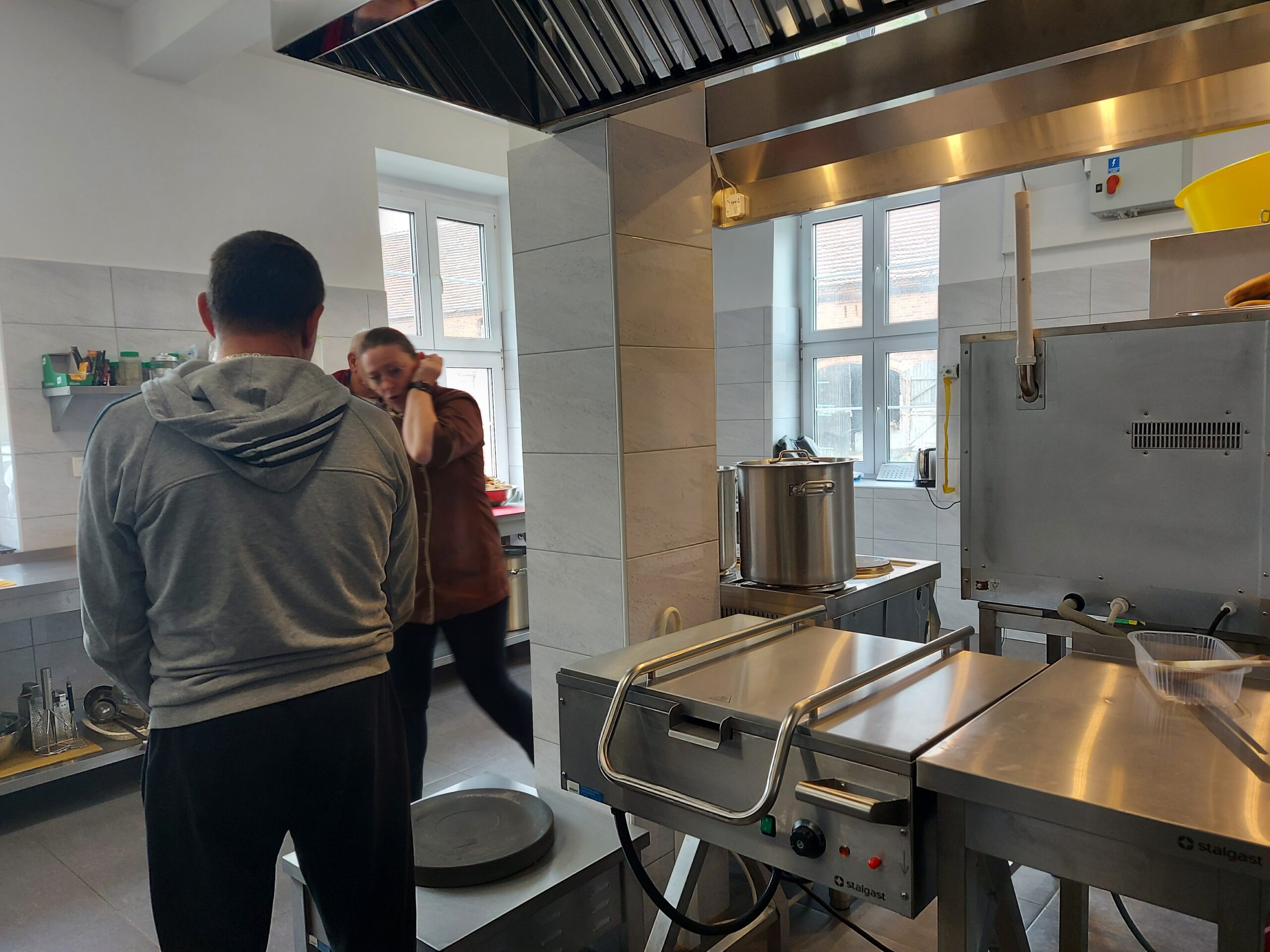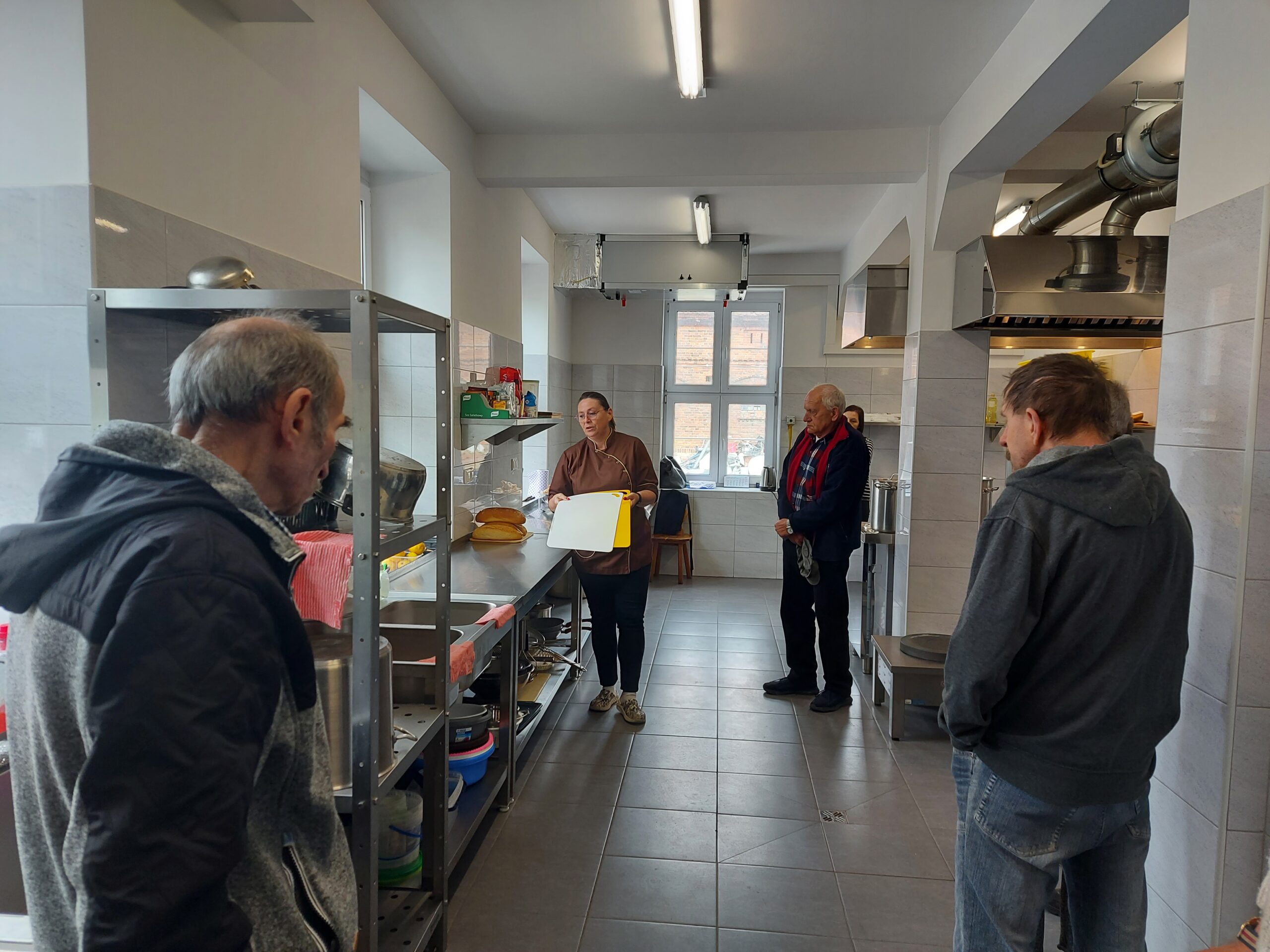 Dzisiaj odbyło się spotkanie z Couchem. Pani Coach podczas spotkanie opowiedziała wybranym Mieszkańcom o poszczególnych narzędziach kuchennych, o zasadach panujących podczas pracy w kuchni. Po kilkutygodniowej obserwacji można było odnieść się do konkretnych czynności, które są wykonywane przez Mieszkańców Schroniska. Panowie biorący udział w spotkaniu, uczestniczą w przygotowaniach posiłków. Powoli wyłaniają się liderzy. Są osoby dobrze radzące sobie z obróbką wstępną warzyw i owoców. Są też tacy, którzy całkiem dobrze radzą sobie z utrzymaniem porządku w kuchni. Panowie odkrywają na nowo swoje umiejętności. Jako kadra chcielibyśmy, żeby Panowie rozwijali się i poczuli spełnienie podczas wykonywania prac kuchennych.