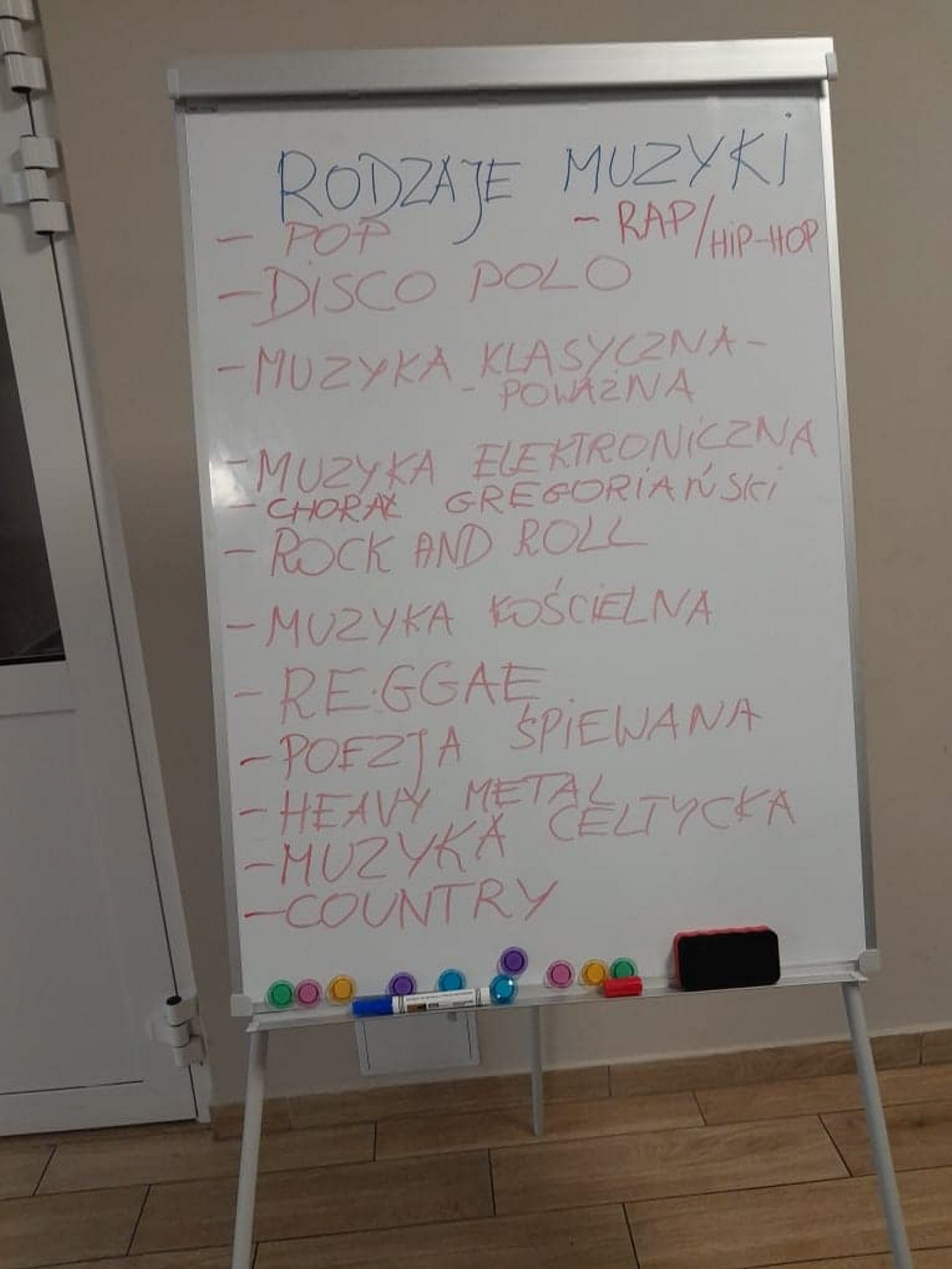 Na zakończenie zajęć każdy z uczestników mógł wypowiedzieć się, jaką muzykę najbardziej lubi, jaka go uspokaja i relaksuje. Jak się okazało, deszczowa aura prowadzonej z wykorzystaniem muzyki relaksacji sprzyjała efektywności zajęć, gdyż uczestnicy projektu sygnalizowali, że chętnie wzięliby udział w takich zajęciach po raz kolejny.