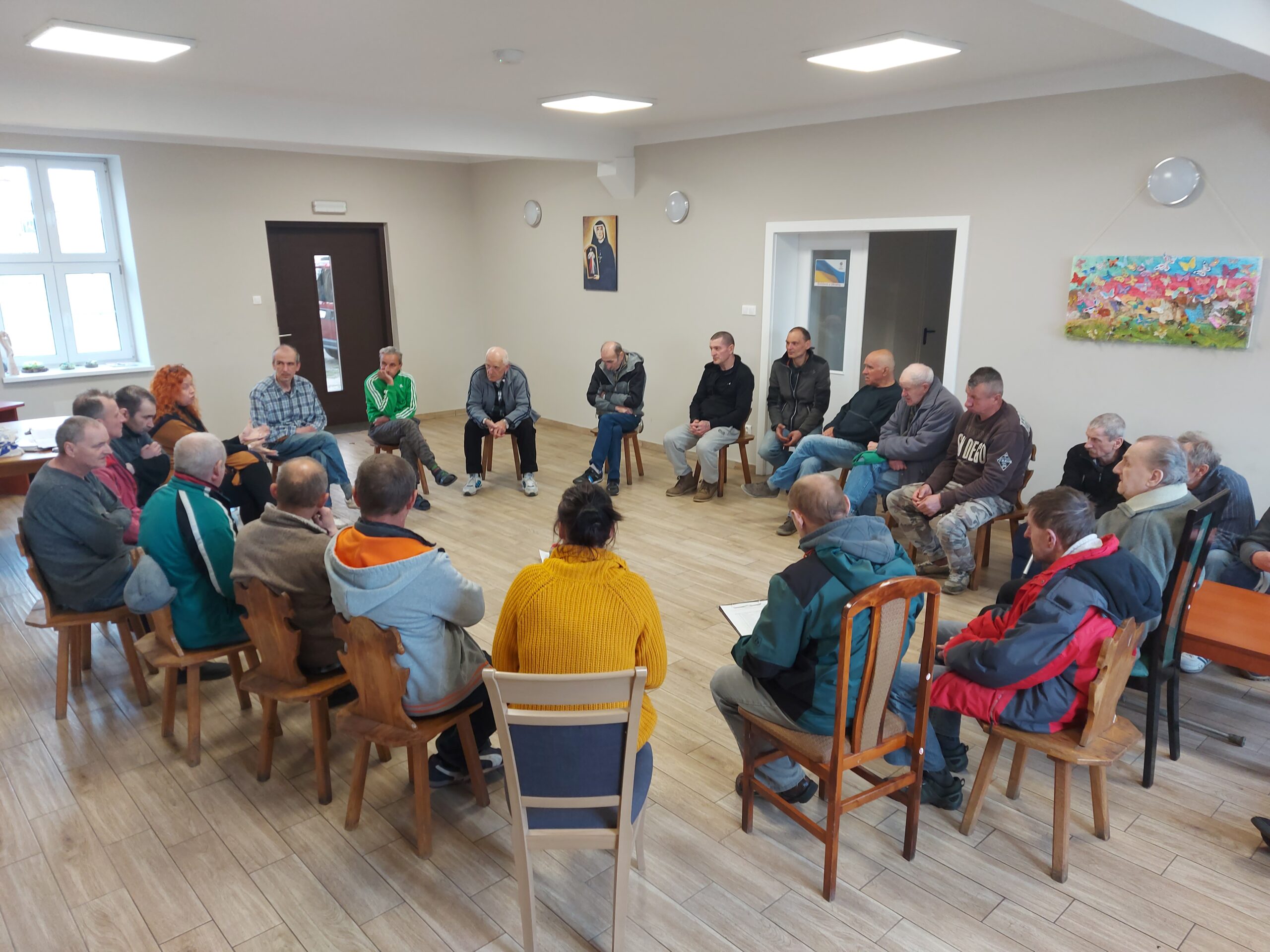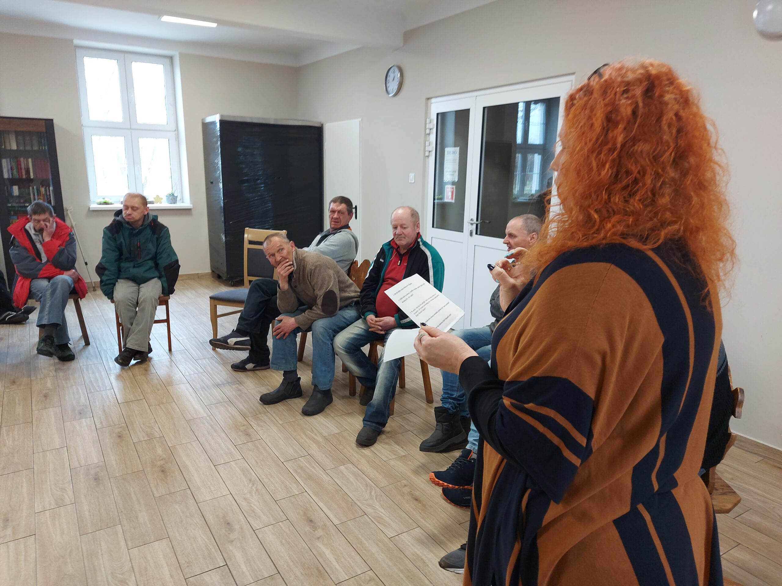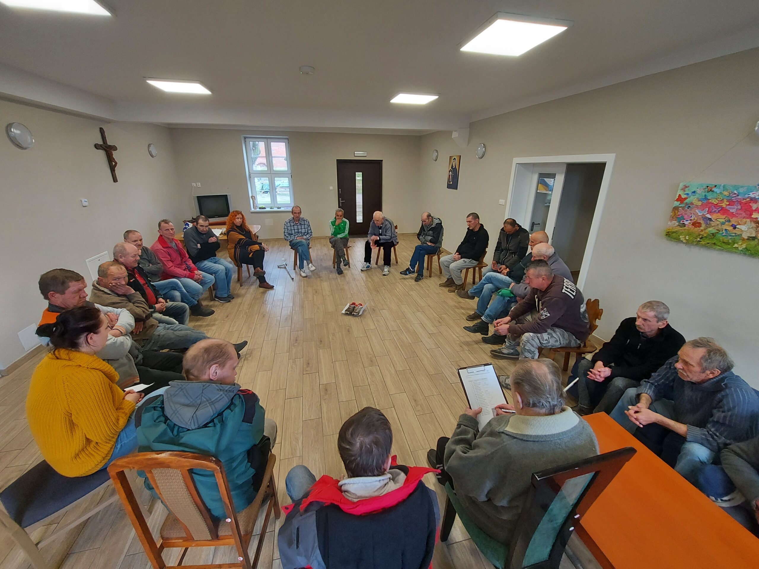 W ramach spotkania społeczności, w piątek 8 kwietnia Panowie wraz z Pracownikami mieli okazję omówić bieżące sprawy, które – jak się okazuje, mają duże znaczenie dla właściwej atmosfery pomiędzy mieszkańcami Naszego Ośrodka. Oprócz praktycznych informacji dotyczących życia codziennego, takie spotkania służą przede wszystkim poszerzaniu umiejętności komunikacyjnych, w tym aktywnego słuchania czy asertywności oraz przede wszystkim – bardzo ważnego wzajemnego szacunku.