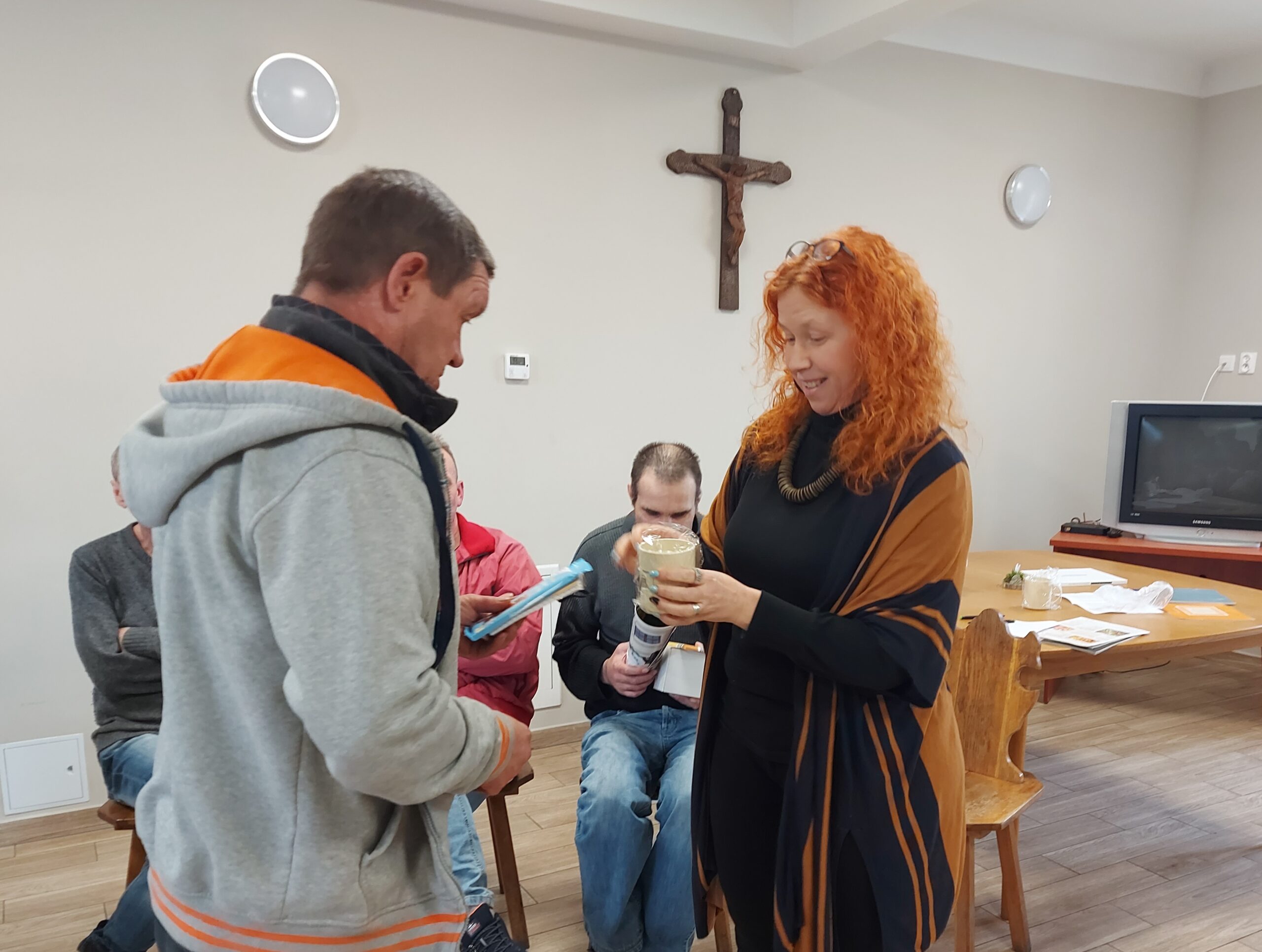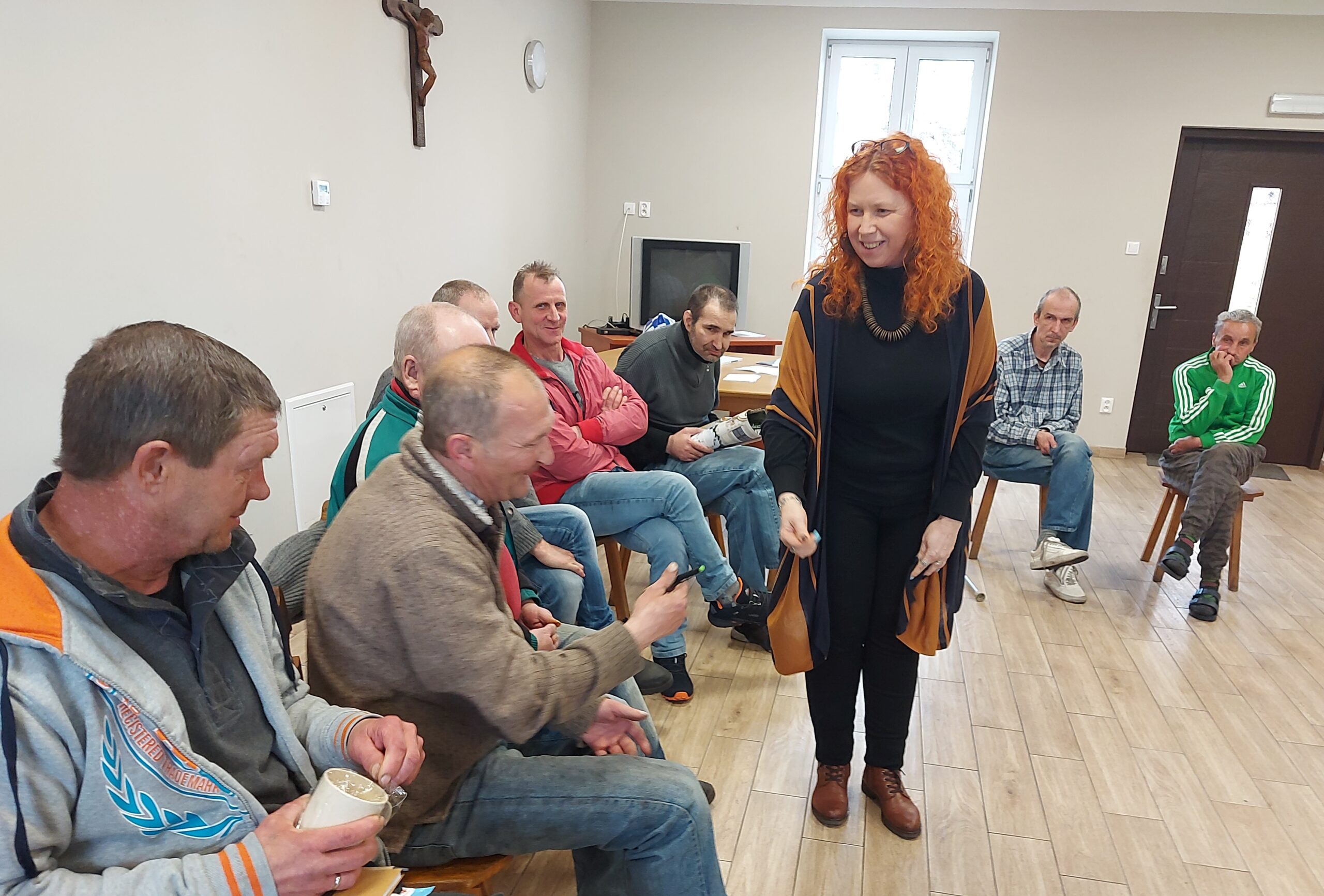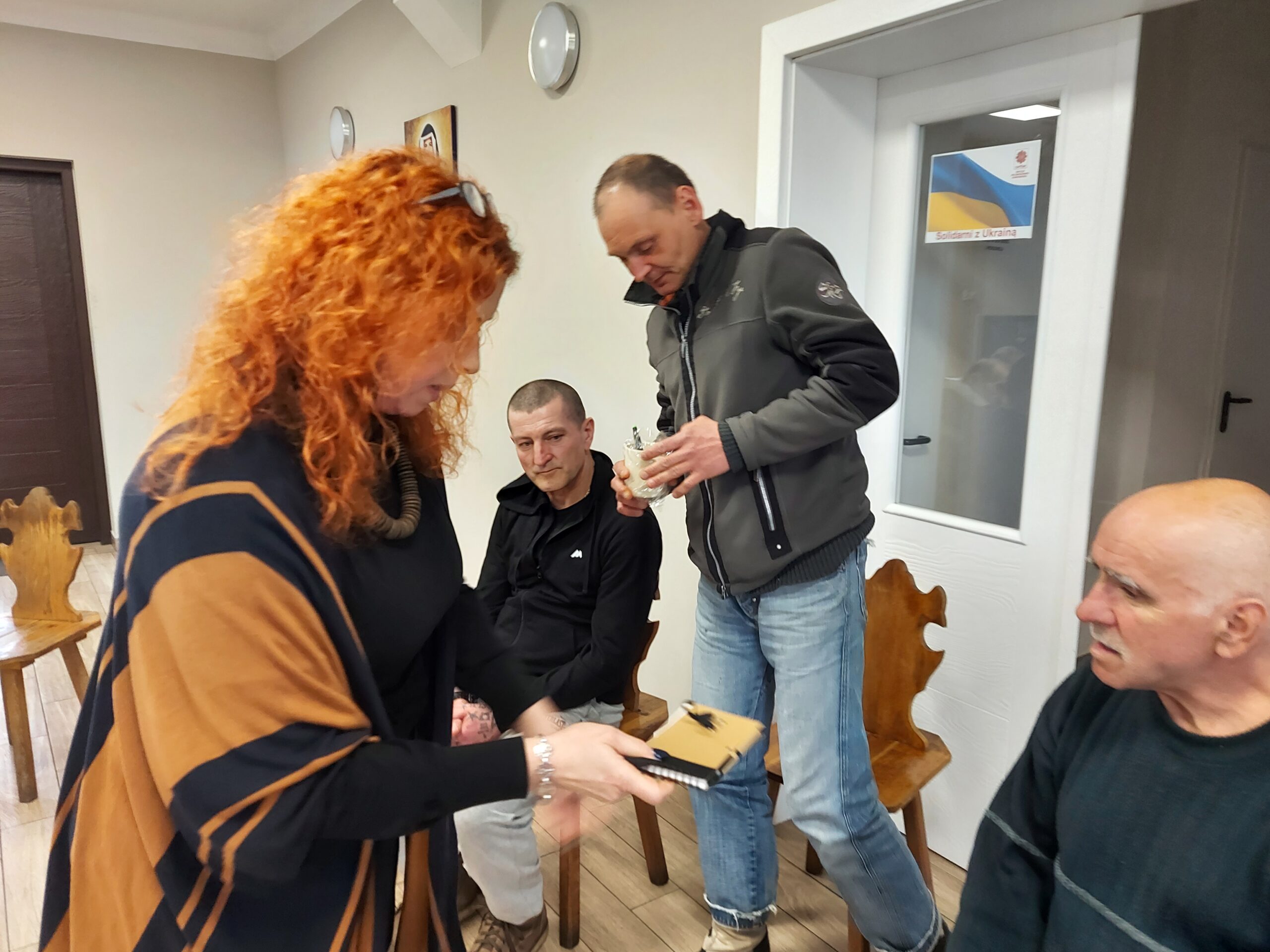 W ramach spotkania społeczności, w piątek 8 kwietnia Panowie wraz z Pracownikami mieli okazję omówić bieżące sprawy, które – jak się okazuje, mają duże znaczenie dla właściwej atmosfery pomiędzy mieszkańcami Naszego Ośrodka. Oprócz praktycznych informacji dotyczących życia codziennego, takie spotkania służą przede wszystkim poszerzaniu umiejętności komunikacyjnych, w tym aktywnego słuchania czy asertywności oraz przede wszystkim – bardzo ważnego wzajemnego szacunku.